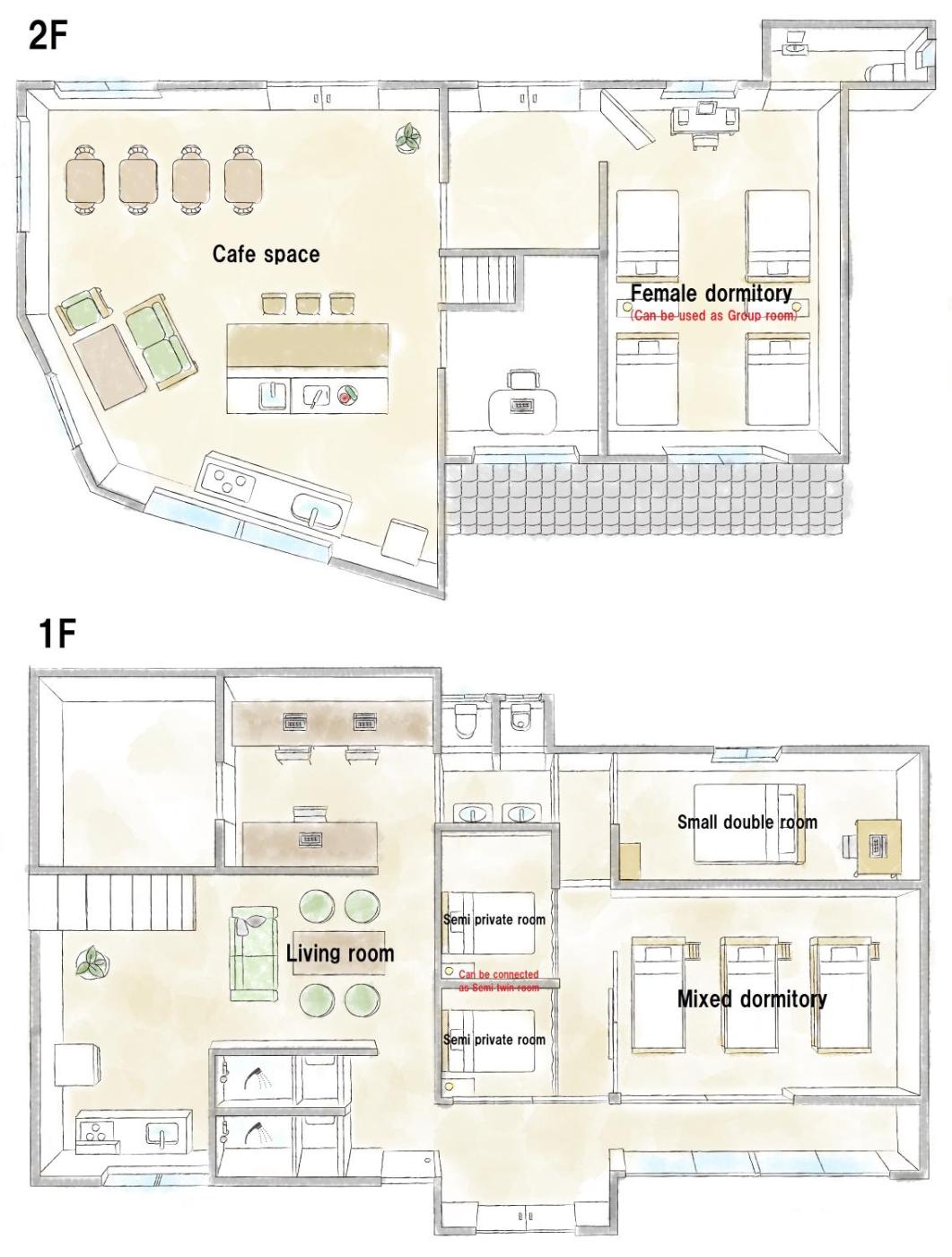 Bunk Bed in Mixed Dormitory Room. Children aged 6 and under are not allowed to stay in Mixed Dormitory Room. This bed in dormitory has a kitchenware, electric kettle and dining area. ;